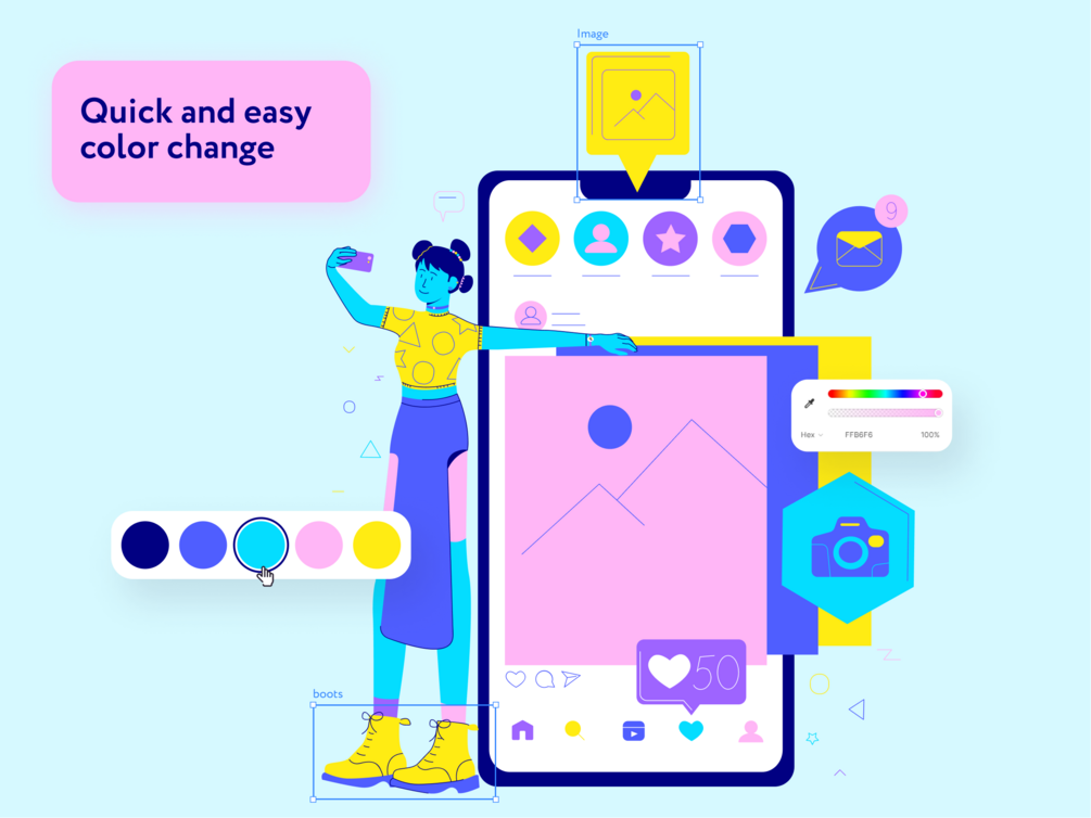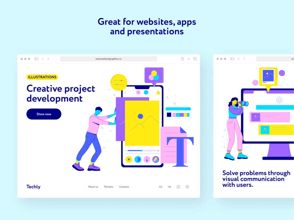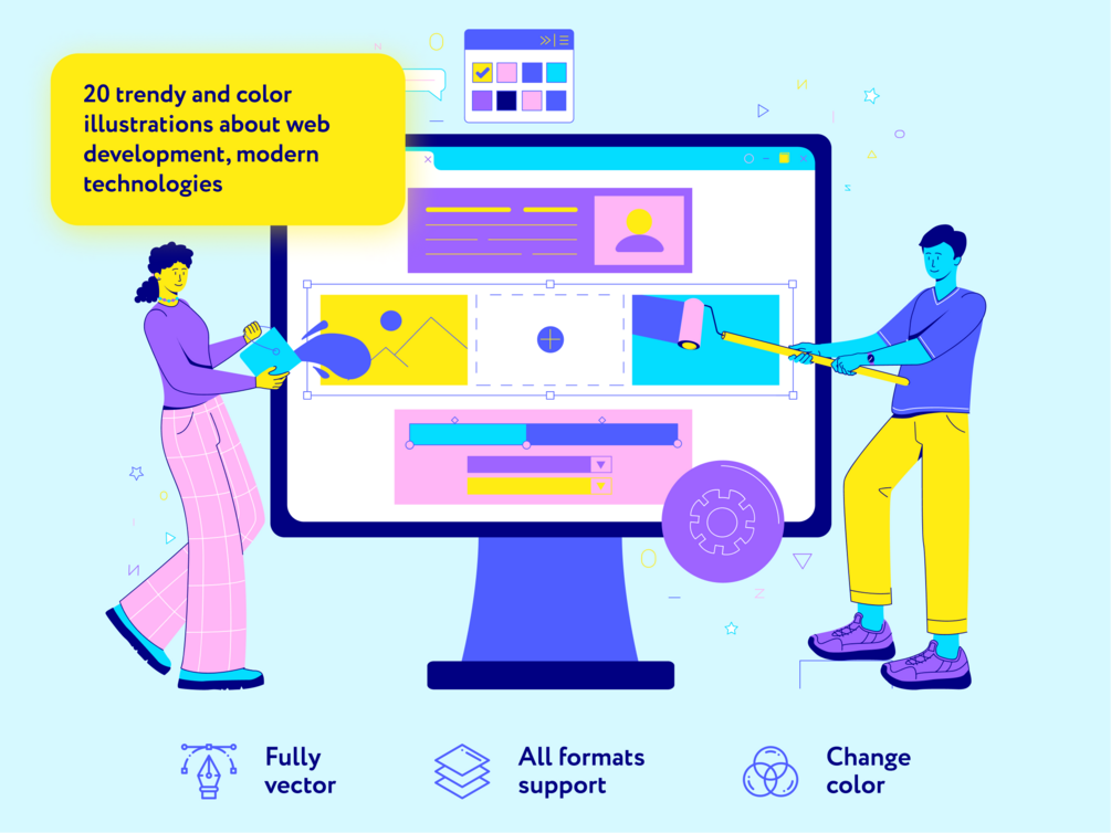 20 cool illustrations about web development, studio development, modern technologies used in website creation. This set of illustrations will perfectly decorate your web pages and attract the attention of users. Take the illustrations and in a few clicks easily and quickly adapt them to your creative projects and presentations.